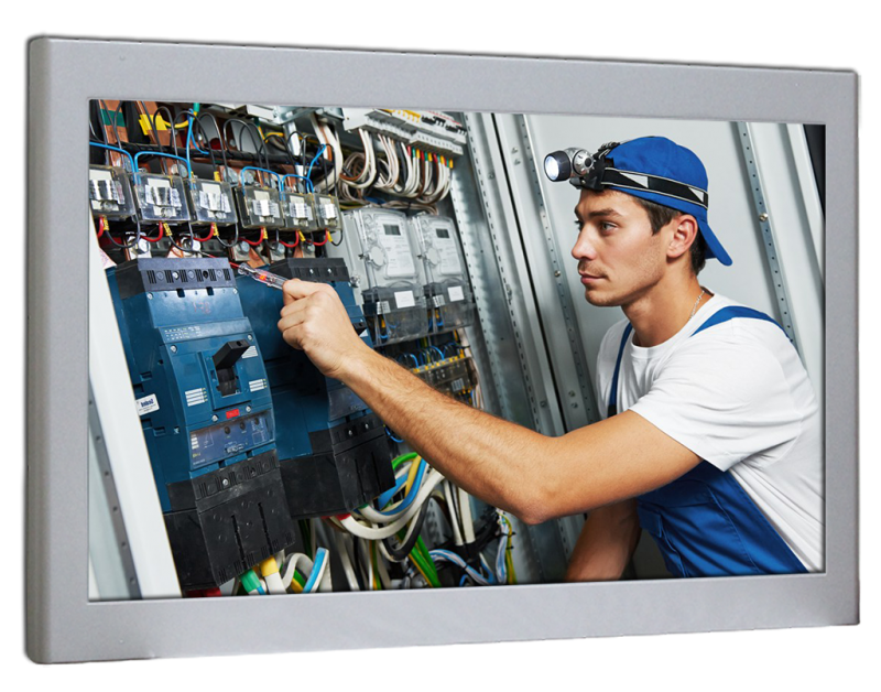 En solid industriskjerm m/5W touch (single) - for VESA montering eller med klips (medfølger). Laget i metall - ta kontakt om du trenger