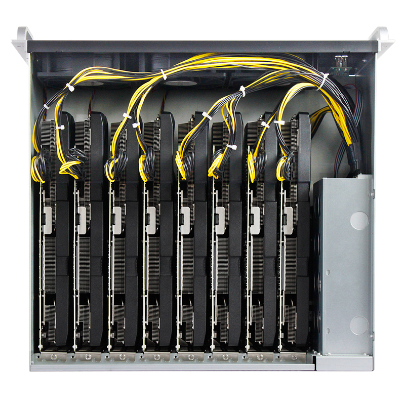 - Støtter opp til 8 doble kortplasser (Skjermkort / miningkort følger ikke med)