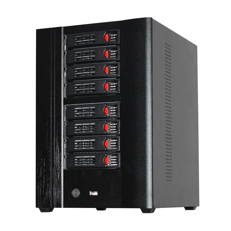 Et solid NAS kabinett, perfekt for både kontor og hjemme bruk! - 220 x 311,7 x 244,5mm (BxHxD) - 8 x 3.5" HDD m/HotSwap rammer - Mini ITX - Støtte ekspansjons kort - Støtte for 2 x 120mm vifter