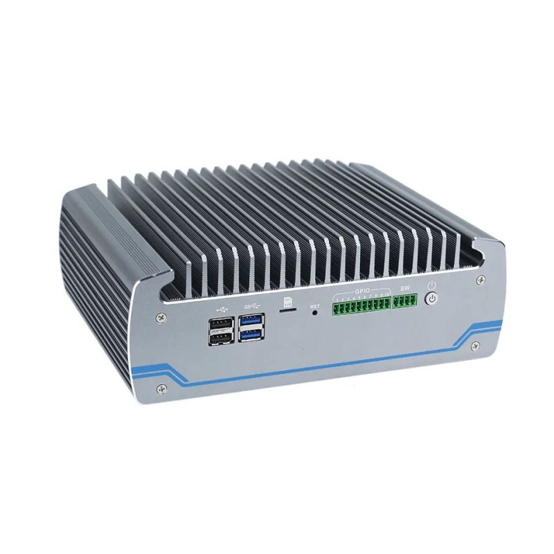Maskinen har 1 x 10P. GPIO Phoenix kontakter med optocoupler isolasjon. I tillegg har den 2 x LAN og 4 x USB 3.0 og 2 x USB 2.0 - som gjør dette til en super løsning for machine vision løsninger og industriautomasjon! 6 x COM er direkte via HK mens 4 x COM (front) er via M.2 2280 adapter og AX99100 brikkesettet.